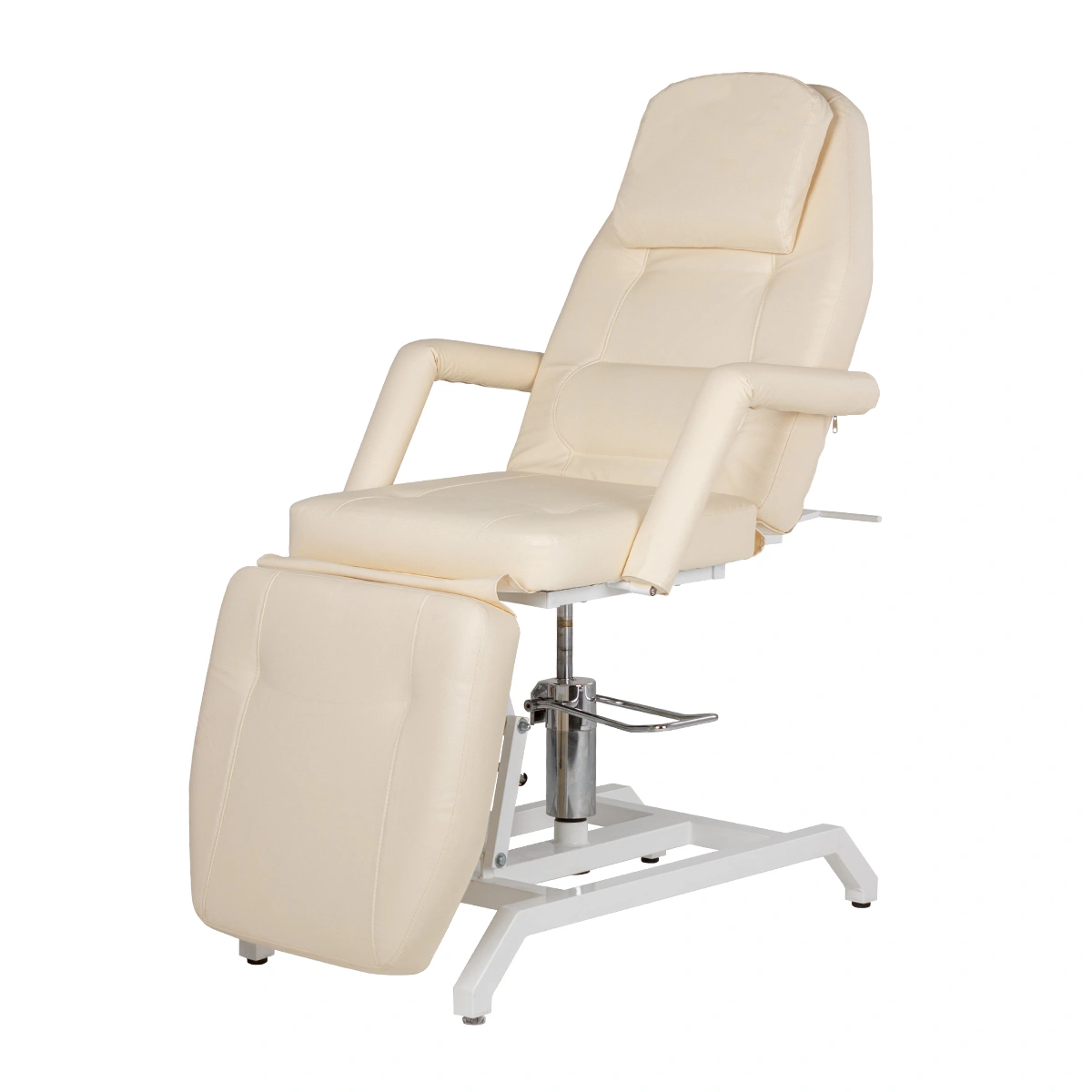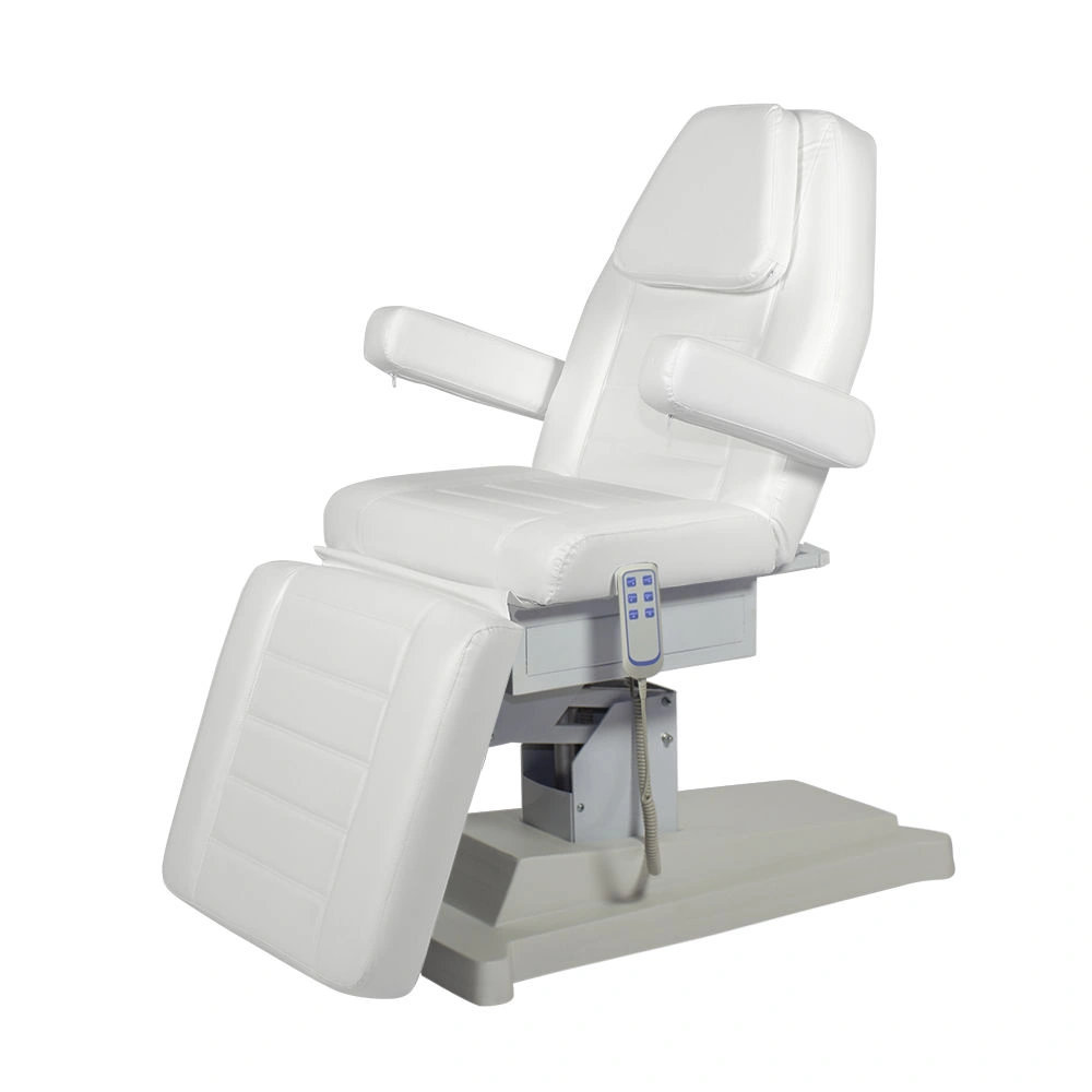 Функциональная модель оснащена 3 двигателями, является оборудованием для профессиональных косметологических салонов. Приводы обеспечивают комфортную регулировку спинки, установку положения подножки, высоту подъема изделия. Электропривод управляется удобным пультом или педалью, имеет держатель сбоку от сиденья. Мастеру удобно работать с клиентом. Клиент комфортно располагается в кресле при проведении массажа или других процедур. Поверхность кресла влагоустойчивая, хорошо переносит обработку дезинфицирующими средства.