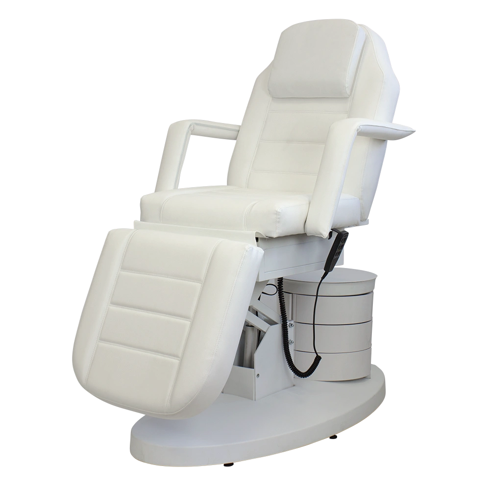 Модель предназначена для оснащения косметологических, массажных заведений высокого класса. Удобство клиента достигается благодаря разделению приспособления на три участка с такими составляющими: спинкой, мягким сиденьем, регулируемой подставкой под ноги. Их положение, как и общая высота устройства, легко и быстро меняются с помощью электрического привода с тремя моторами. Так как изделие оборудовано усиленным каркасом, сильные нагрузки не влияют на функциональность.