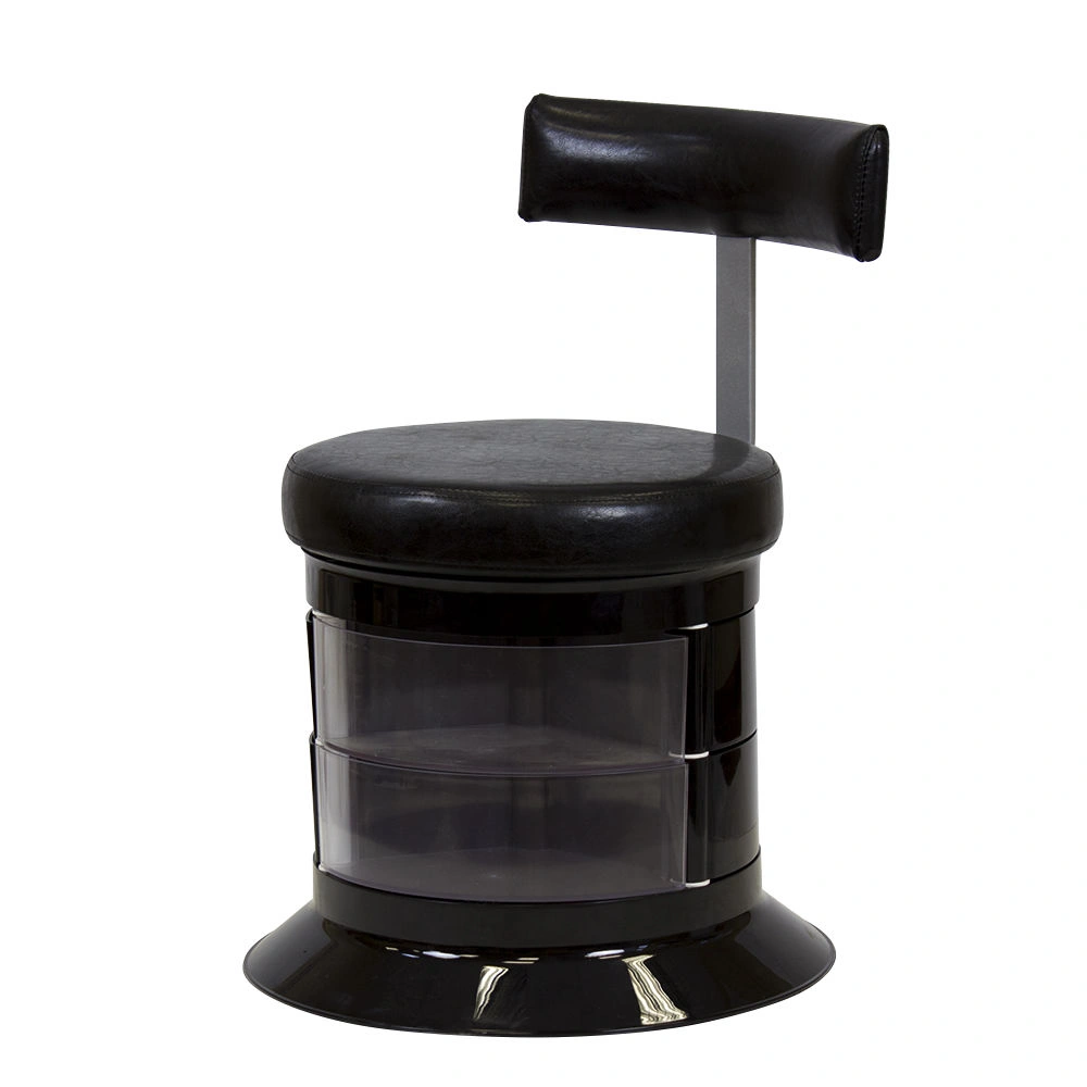 За комфорт пуфика отвечает мягкое сидение. Эргономичная спинка – дополнительное удобство для осанки мастера. В оборудовании предусмотрен практичный элемент – шесть вместительных ящичков. Специалисту не придется тратить время на поиски инструмента по салону. Бесшумно и быстро перемещаться во время рабочего процесса позволяют шесть маневренных колес.
