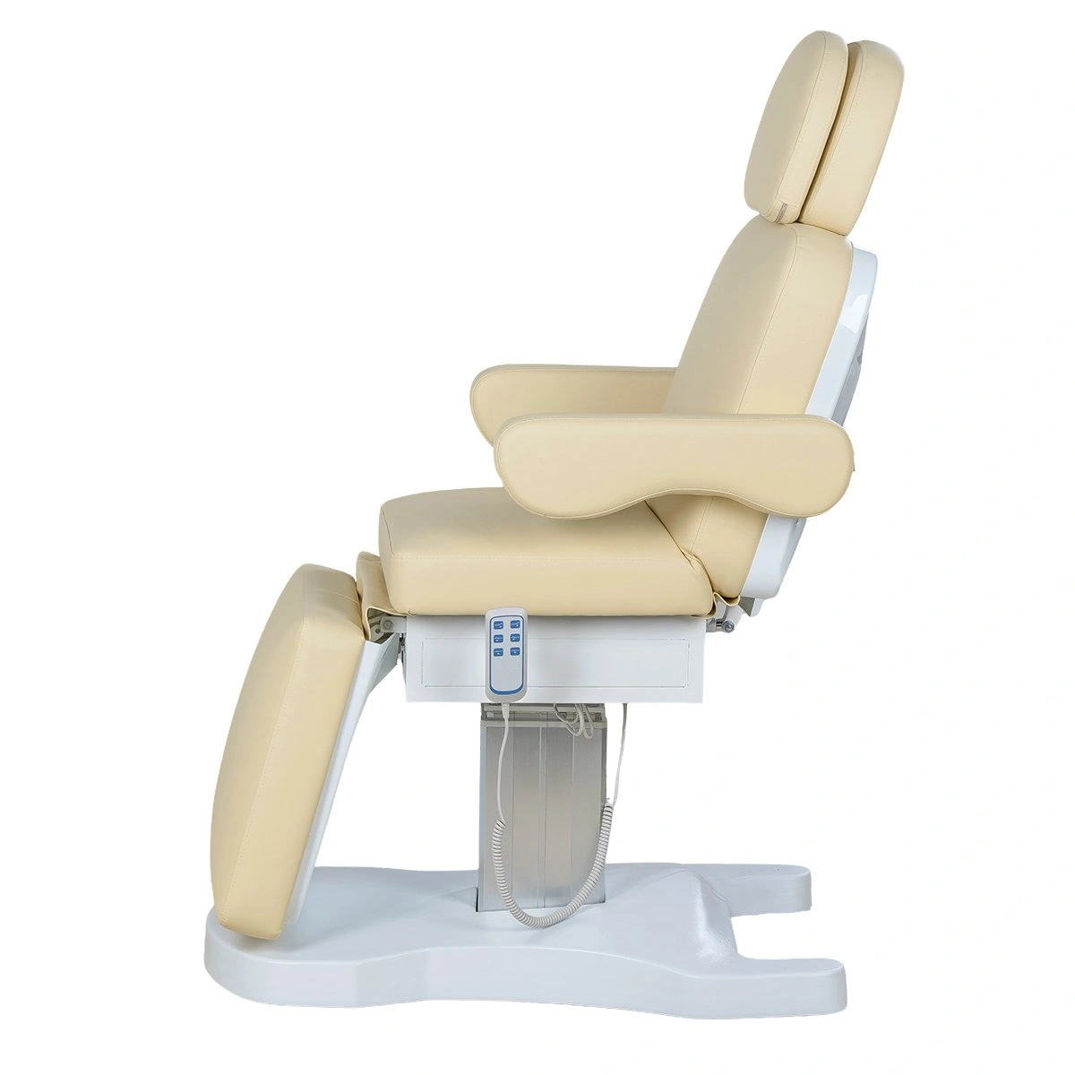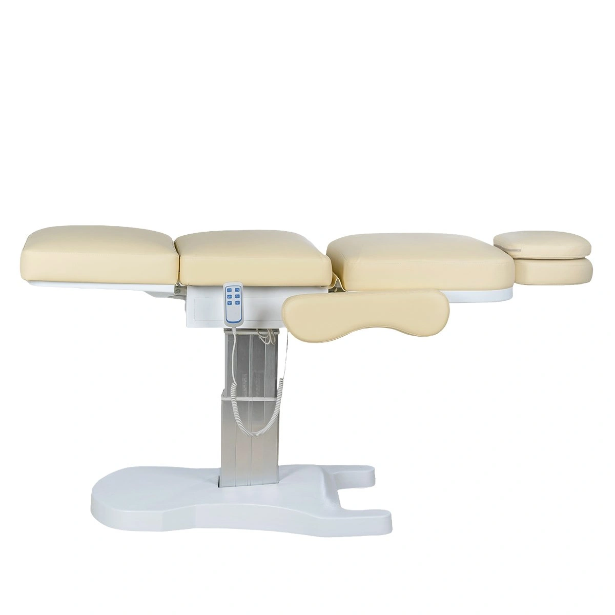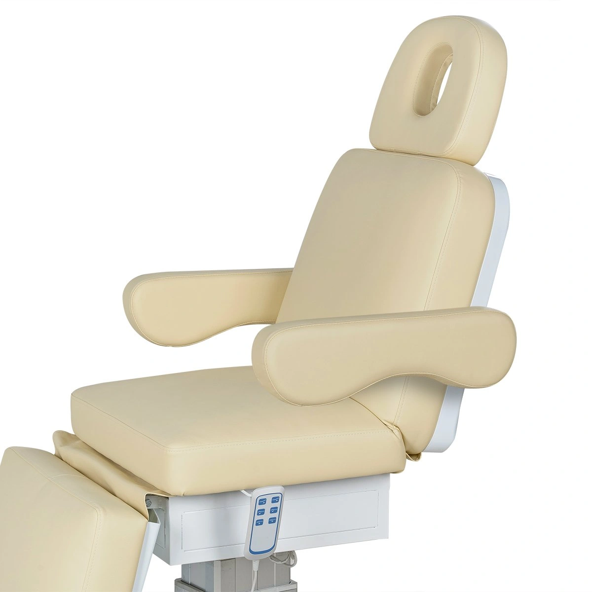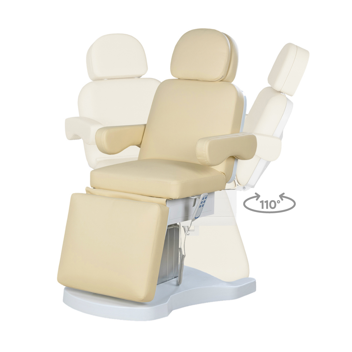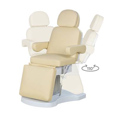 Стильная колонна скрывает все механизмы, а основание с углублением обеспечивает удобный подъезд мастера. Отлично подойдёт для массажей, инъекций и эстетических процедур.