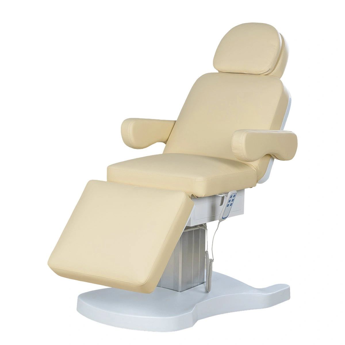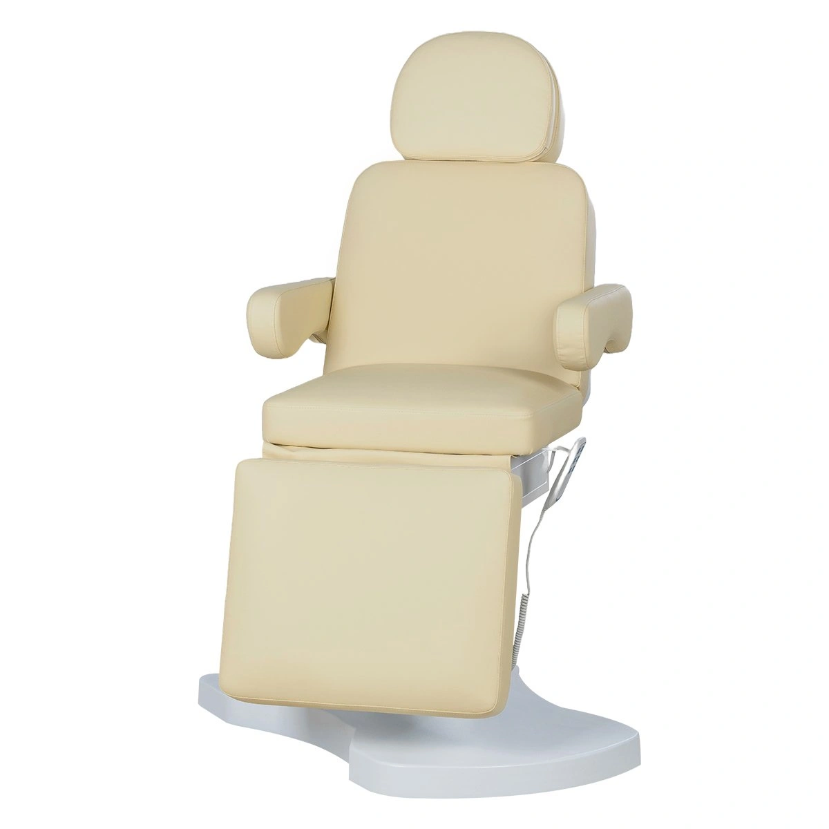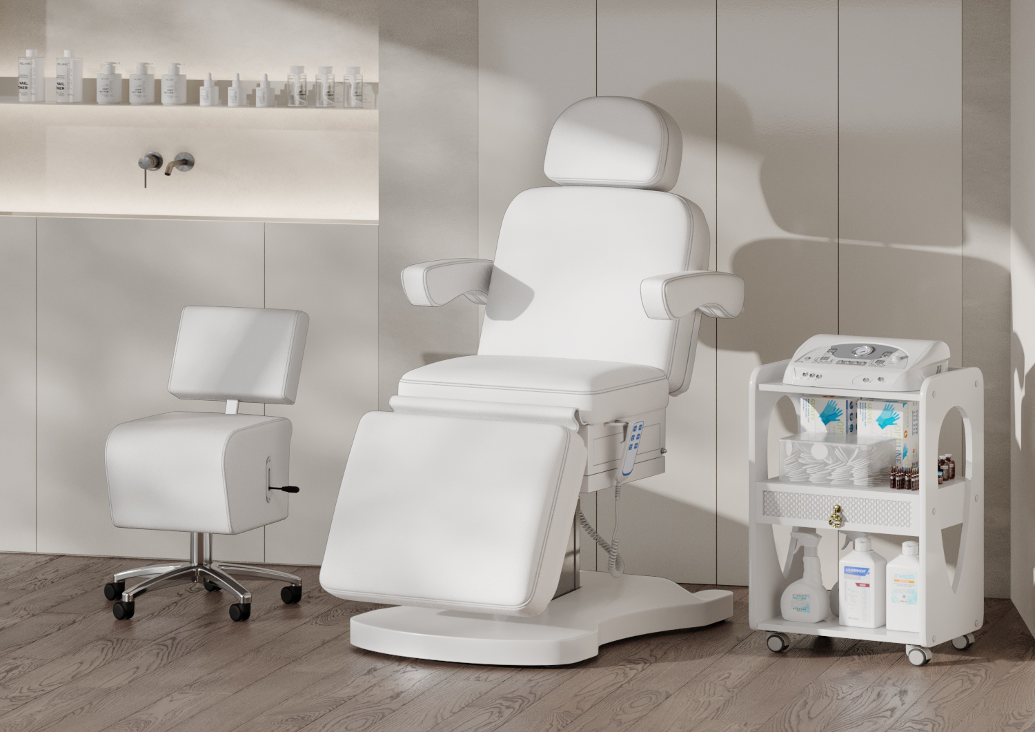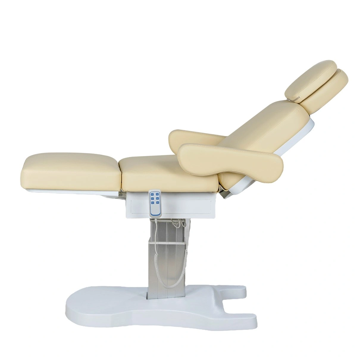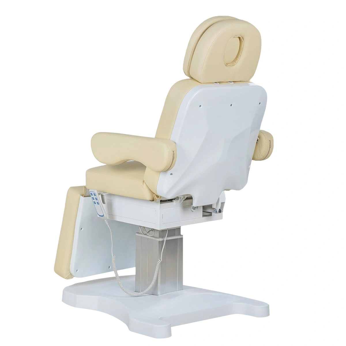 Стильная колонна скрывает все механизмы, а основание с углублением обеспечивает удобный подъезд мастера. Отлично подойдёт для массажей, инъекций и эстетических процедур.