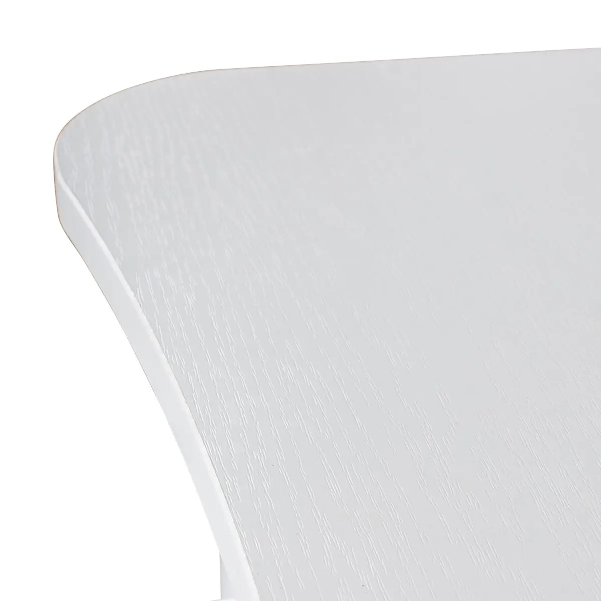 Столешница имеет плавные изгибы, благодаря чему открывается легкий доступ к рукам клиента. На широких краях достаточно места, чтобы поставить маникюрные аппараты и расходные материалы. Под столешницей есть две удобные тумбы с ящиками и открытыми полками для всех приспособлений мастера.