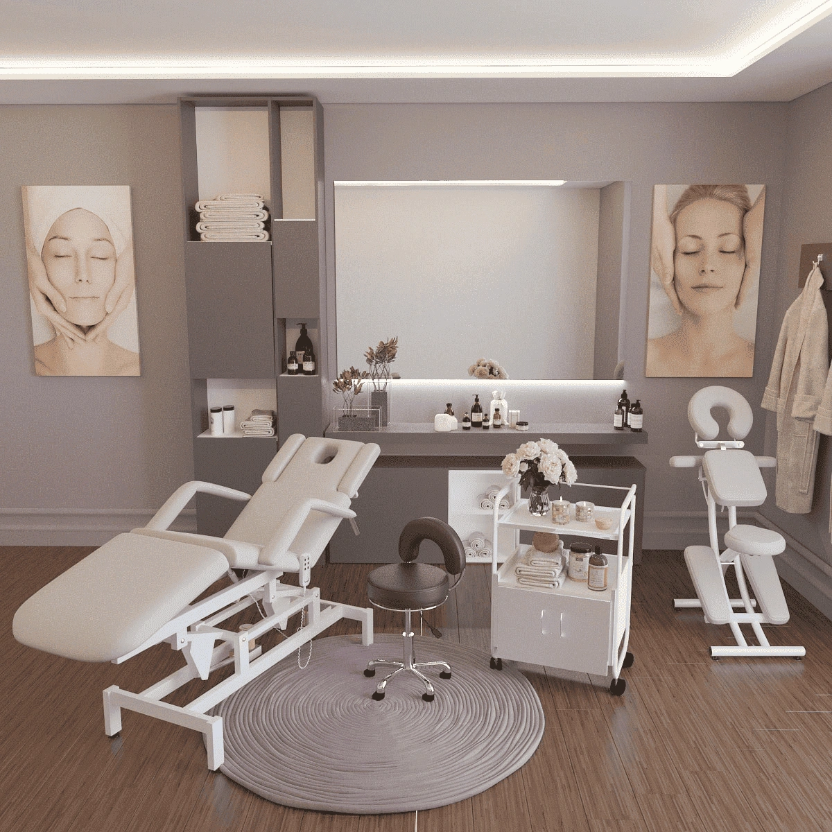 Вы можете заказать кушетку на подпятниках (стандартная комплектация) или на колесной базе.