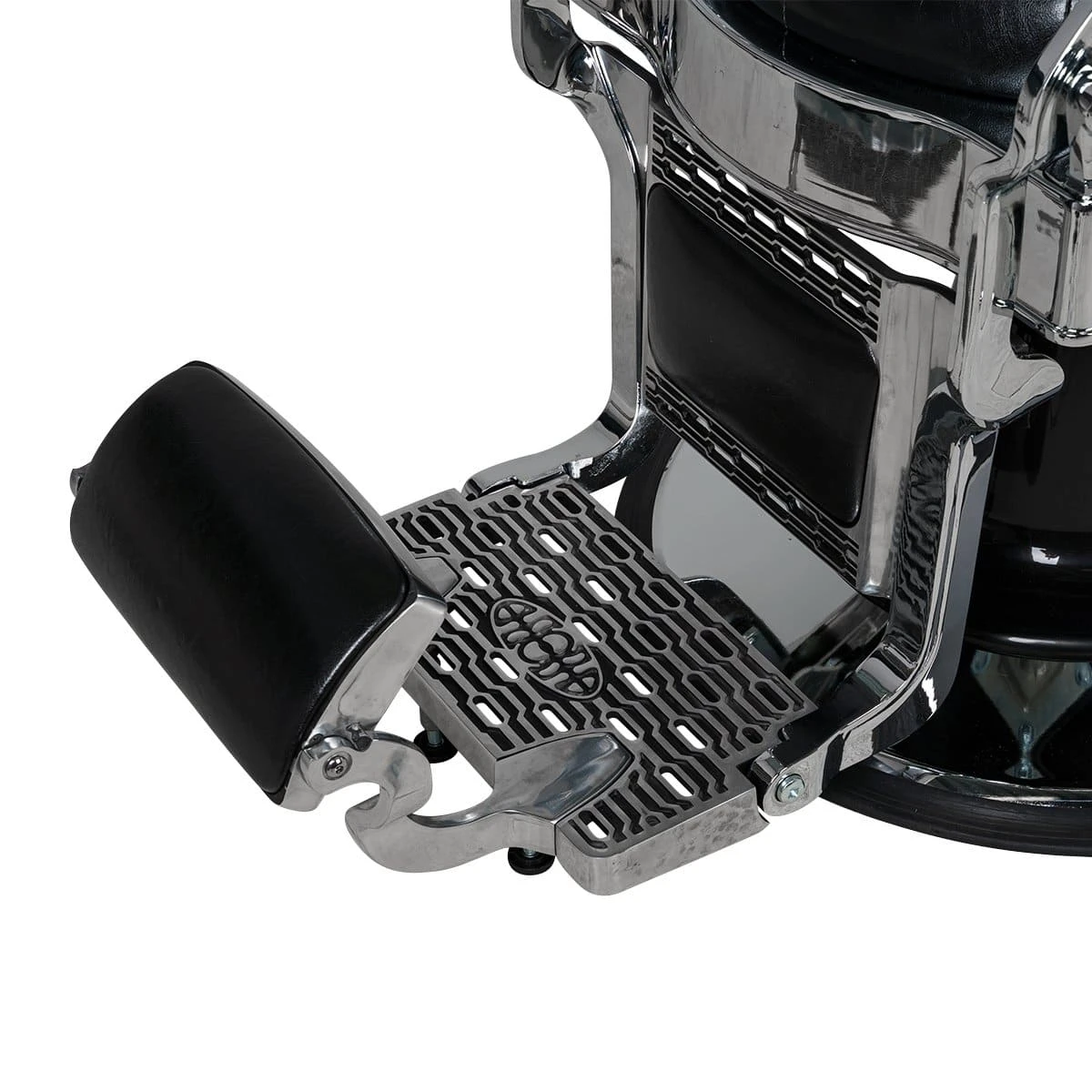 Удобное сидение оснащено широкими подлокотниками для комфорта посетителей. Для поддержания шеи и головы клиента в конструкции предусмотрен мягкий подголовник. Практичная подножка не допустит усталости ног клиентов.