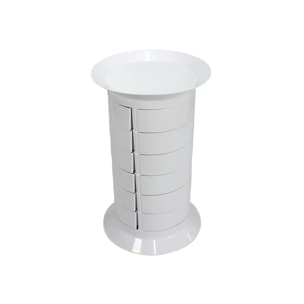 Тумба универсальная GiroCo Catalina white – стильное оборудование для современного салона красоты. Оборудование очень вместительно за счет множества выдвижных ящичков. Для перемещения тумбы в конструкции предусмотрены маневренные колеса. Белый цвет мебели для холла подойдет для любого интерьера.