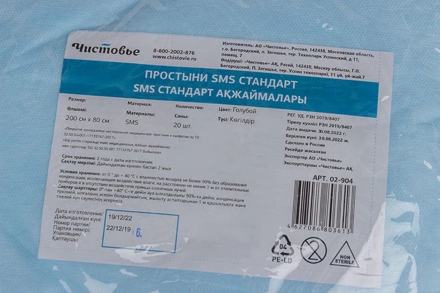 Простыни SMS стандарт – это одноразовые изделия, их обязательно нужно утилизировать после использования.