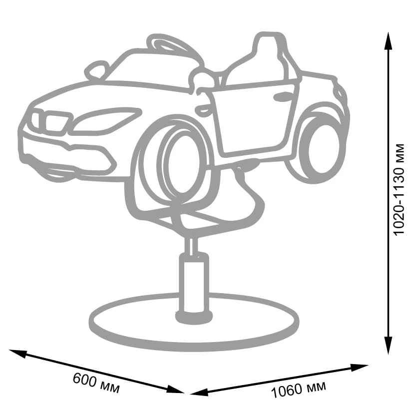 Комплектация: машинка с сиденьем, кабель для подзарядки аккумулятора, металлический каркас, основание, гидравлика.