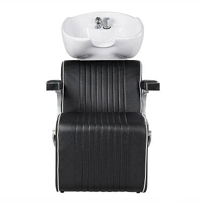 Мойка для барбершопа Челленджер CN отличается стильным дизайном. Оригинальная форма кресла, черная керамическая раковина, обивка из экокожи с рифлением – все это смотрится солидно и стильно. Конструкция мойки максимально продумана для удобства клиента и мастера. Поролоновый наполнитель долго держит форму и не теряет свойств на протяжении всего срока эксплуатации. Экокожа устойчива к воздействию влаги, поэтому ее можно очищать от загрязнений обычной влажной тряпкой.