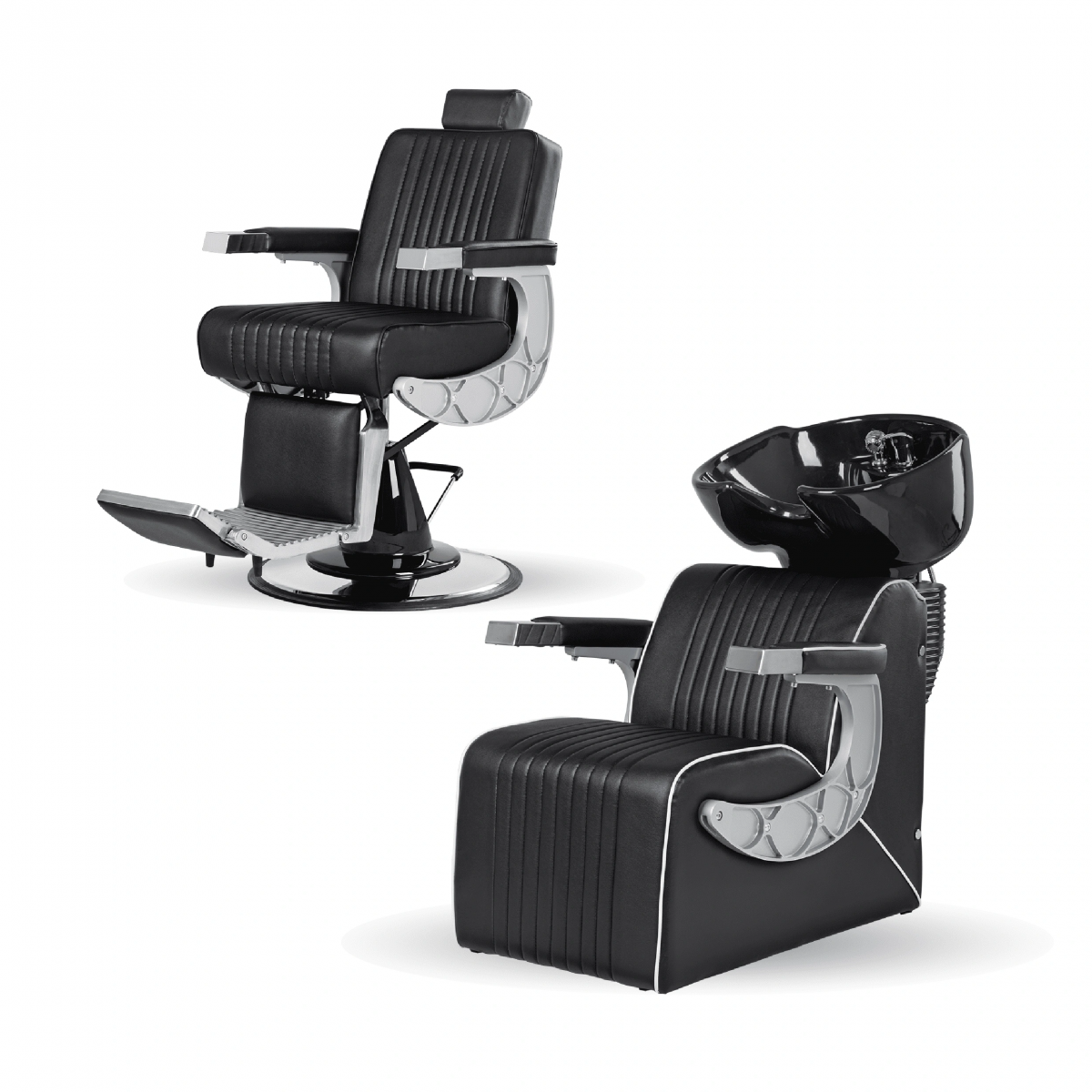 Подъем кресла осуществляется с помощью усиленной гидравлики, что позволяет выдерживать специфические нагрузки мужского салона. Регулировка угла наклона спинки и подножки происходит за счет внешнего рычага и пневматического механизма. Подголовник регулируется механически.