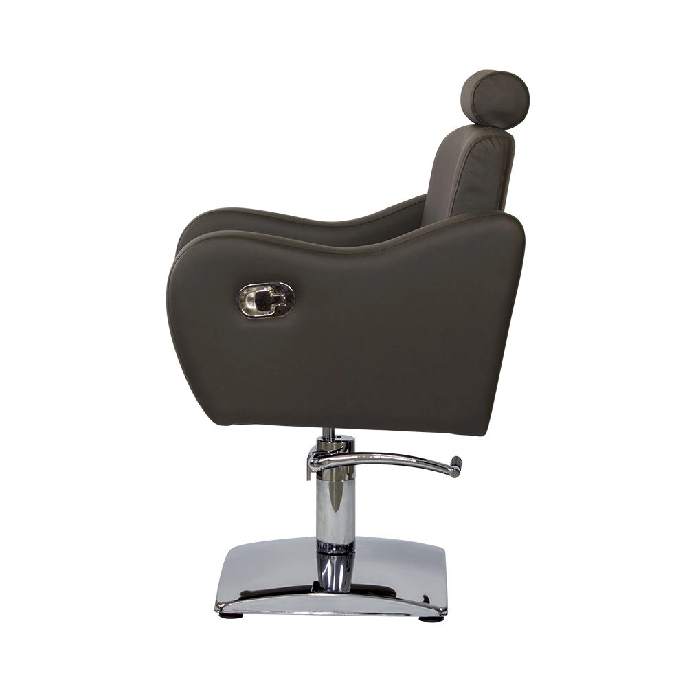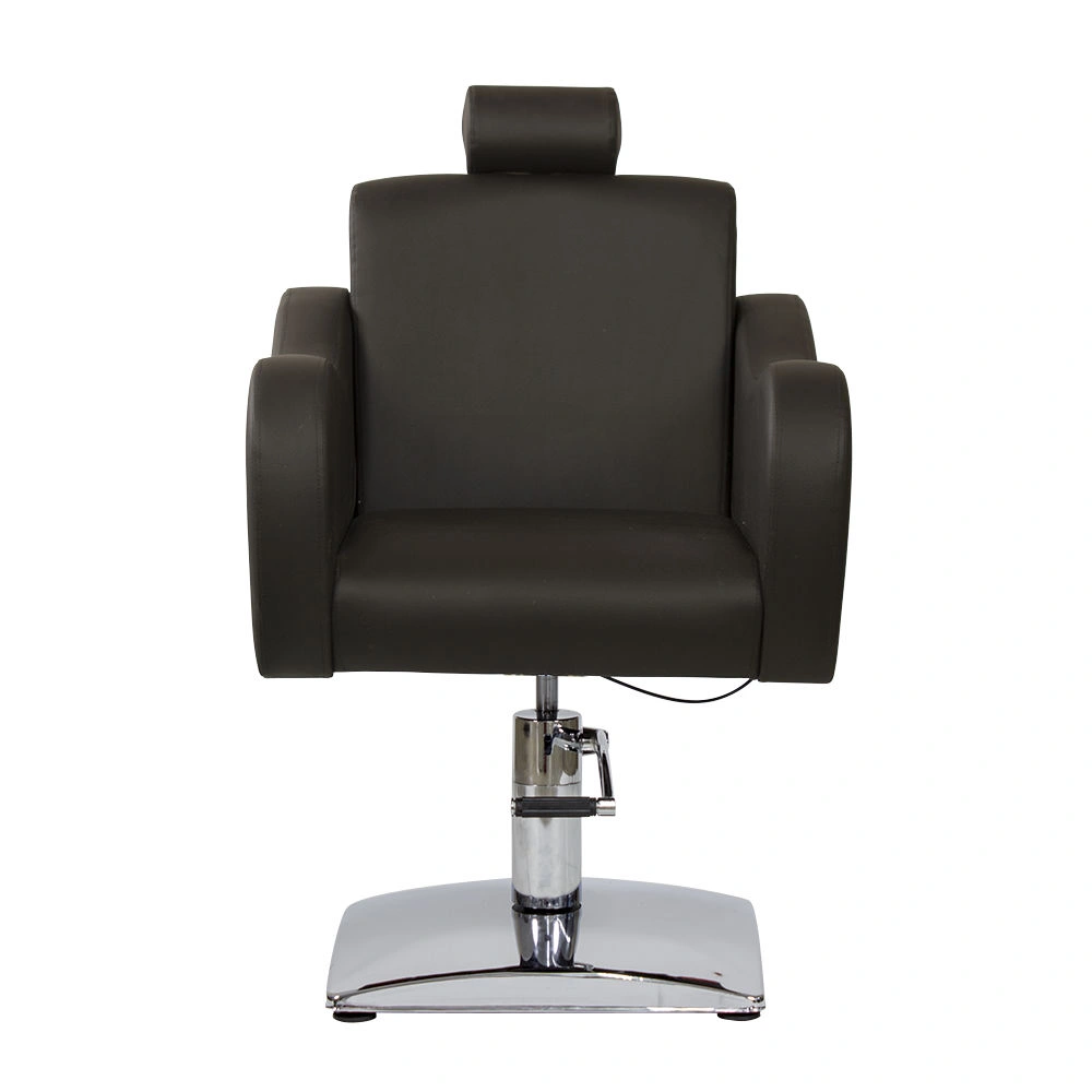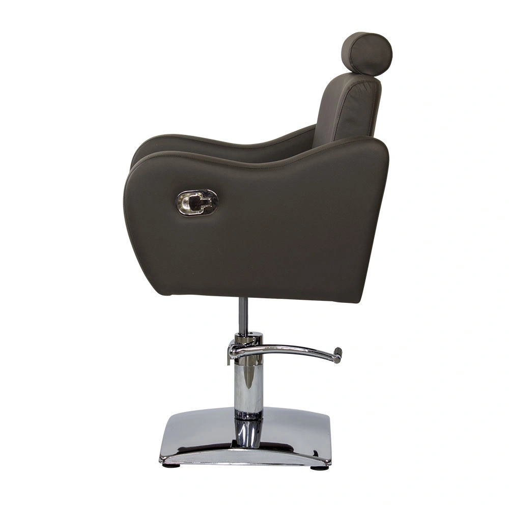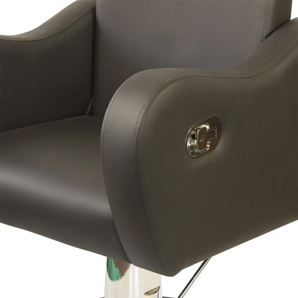 Стильное и комфортное кресло дополнено подголовником, который можно снять при необходимости. Спинку парикмахерского кресла можно регулировать с помощью пневматического механизма, фиксируя наклон. Высота регулируется гидравлическим подъемником.