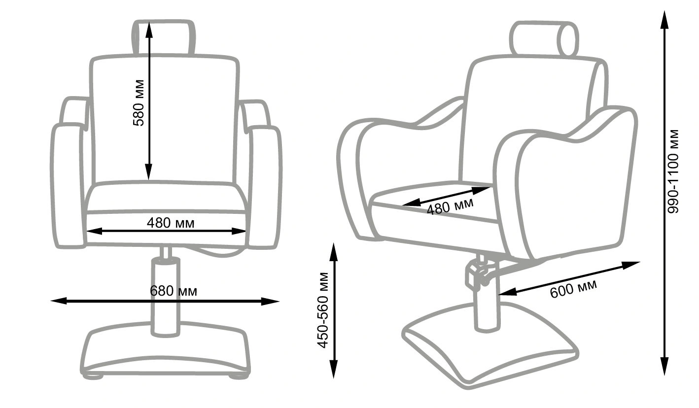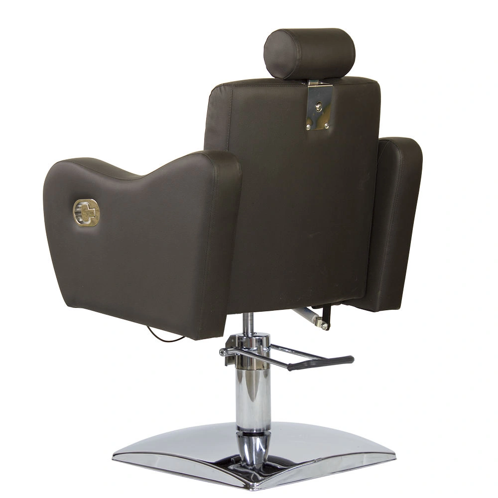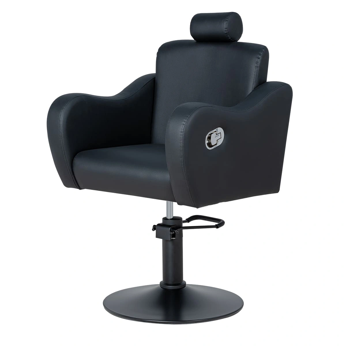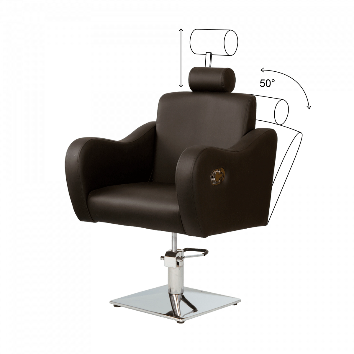 Стильное и комфортное кресло дополнено подголовником, который можно снять при необходимости. Спинку парикмахерского кресла можно регулировать с помощью пневматического механизма, фиксируя наклон. Высота регулируется гидравлическим подъемником.