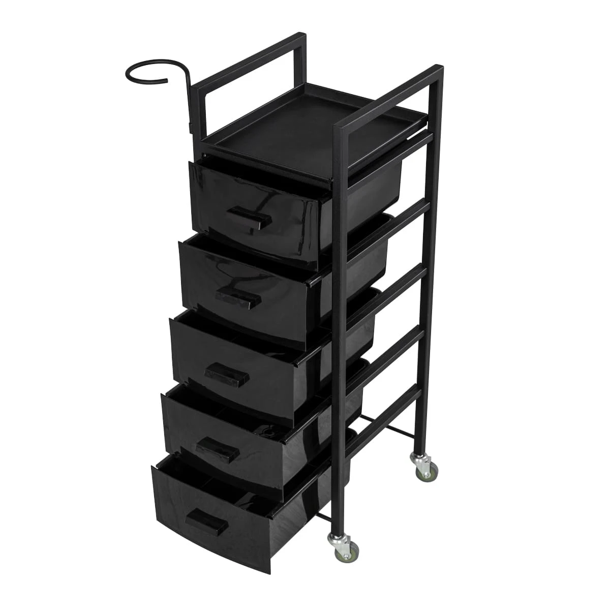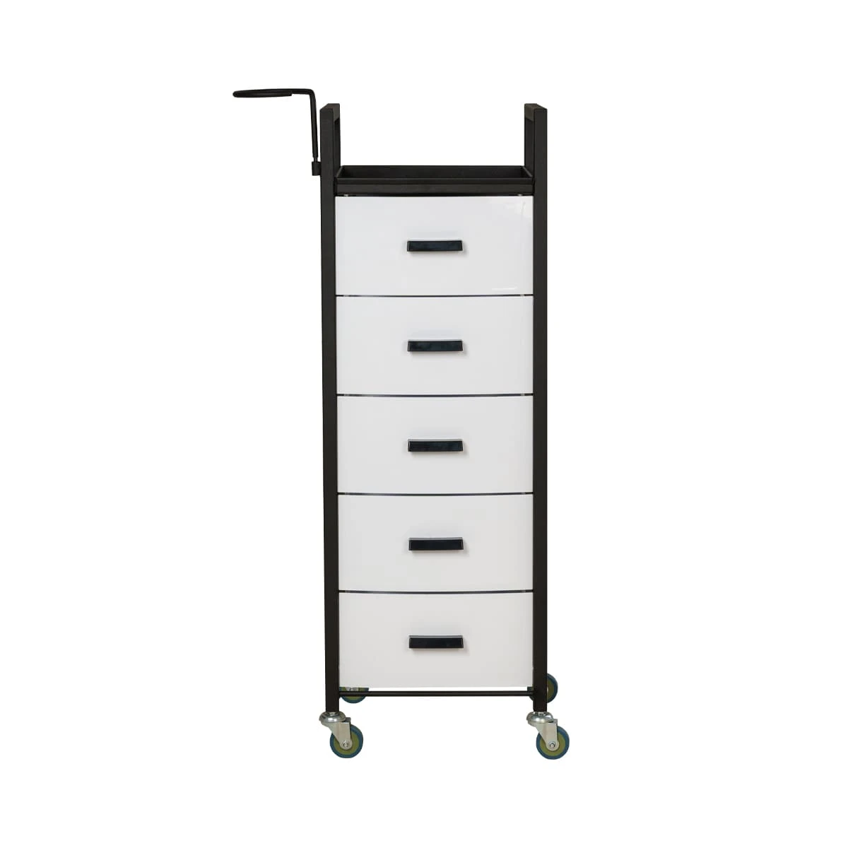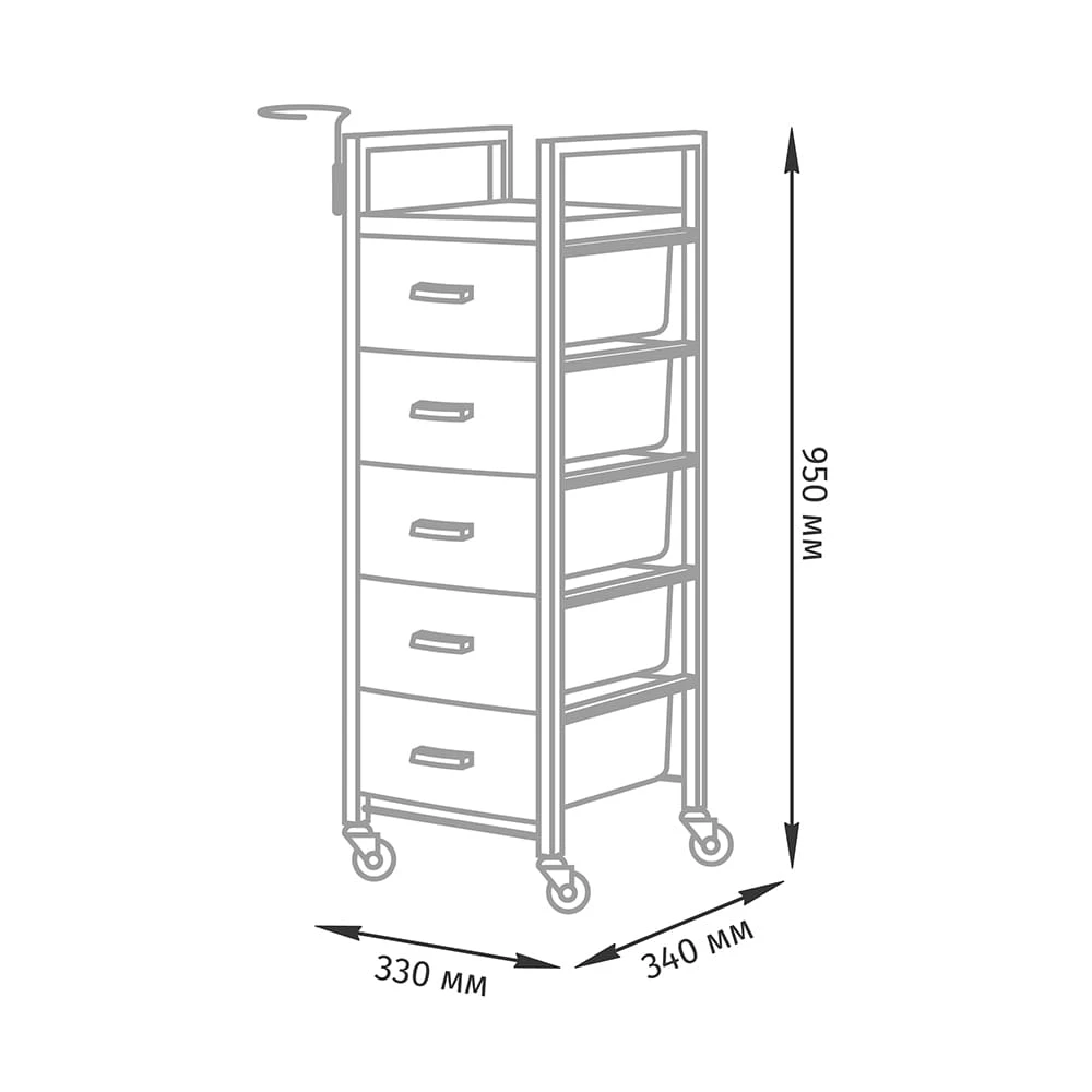 Для принадлежностей в парикмахерской тележке есть пять выдвижных ящиков. Верхняя полка позволит мастеру держать под рукой инструменты, необходимые во время работы с клиентом. На боковине установлен практичный фенодержатель. Вращающиеся колесики обеспечивают плавное и практически бесшумное перемещение оборудования в пределах рабочей зоны.