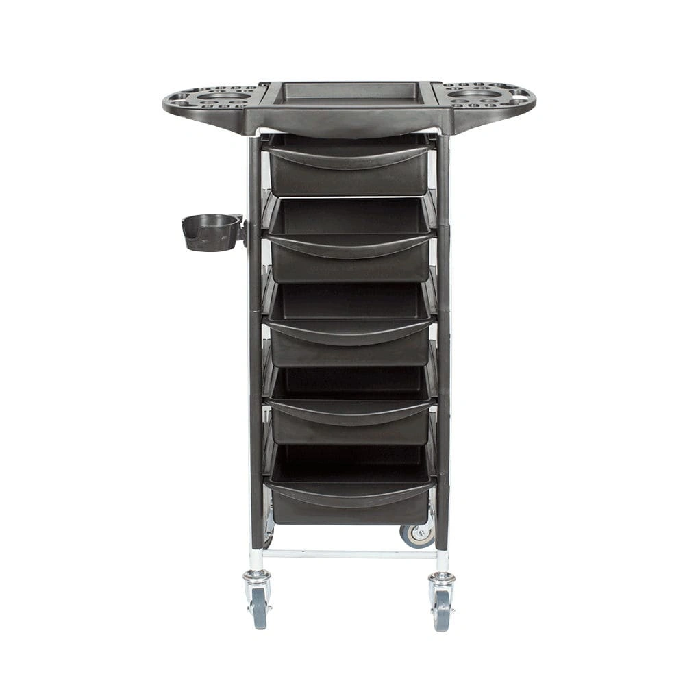 Тележка парикмахерская Т-30 (черный цвет) укомплектована пятью вместительными ящичками из ударопрочного черного пластика. По бокам тележка закрыта декоративными пластиковыми панелями. Благодаря прочному металлическому каркасу конструкция выдерживает достаточно большие нагрузки. Объема ящиков полностью хватит для хранения всех необходимых для работы инструментов, расходных материалов и различных аксессуаров. В нашем магазине Вы можете купить тележку парикмахерскую Т-30 черного цвета по выгодной цене.