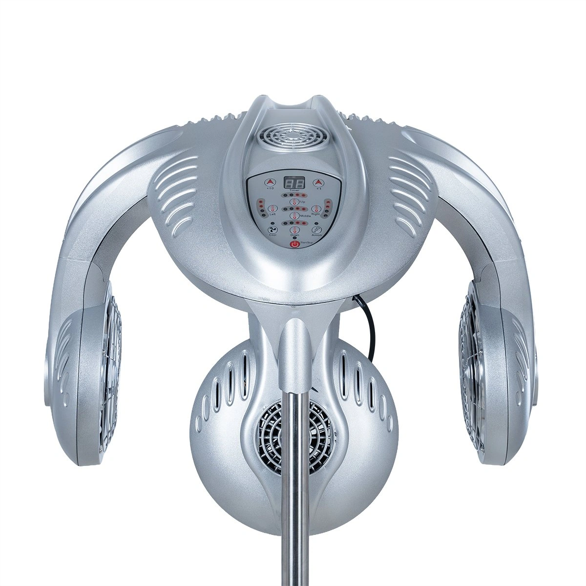 Работать с прибором очень легко, так как он оснащен удобной панелью управления c возможностью настройки программ вручную. В данной модели регулируемая высота, основание с маневренными колесами, пять инфракрасных ламп, вращающихся вокруг оси.