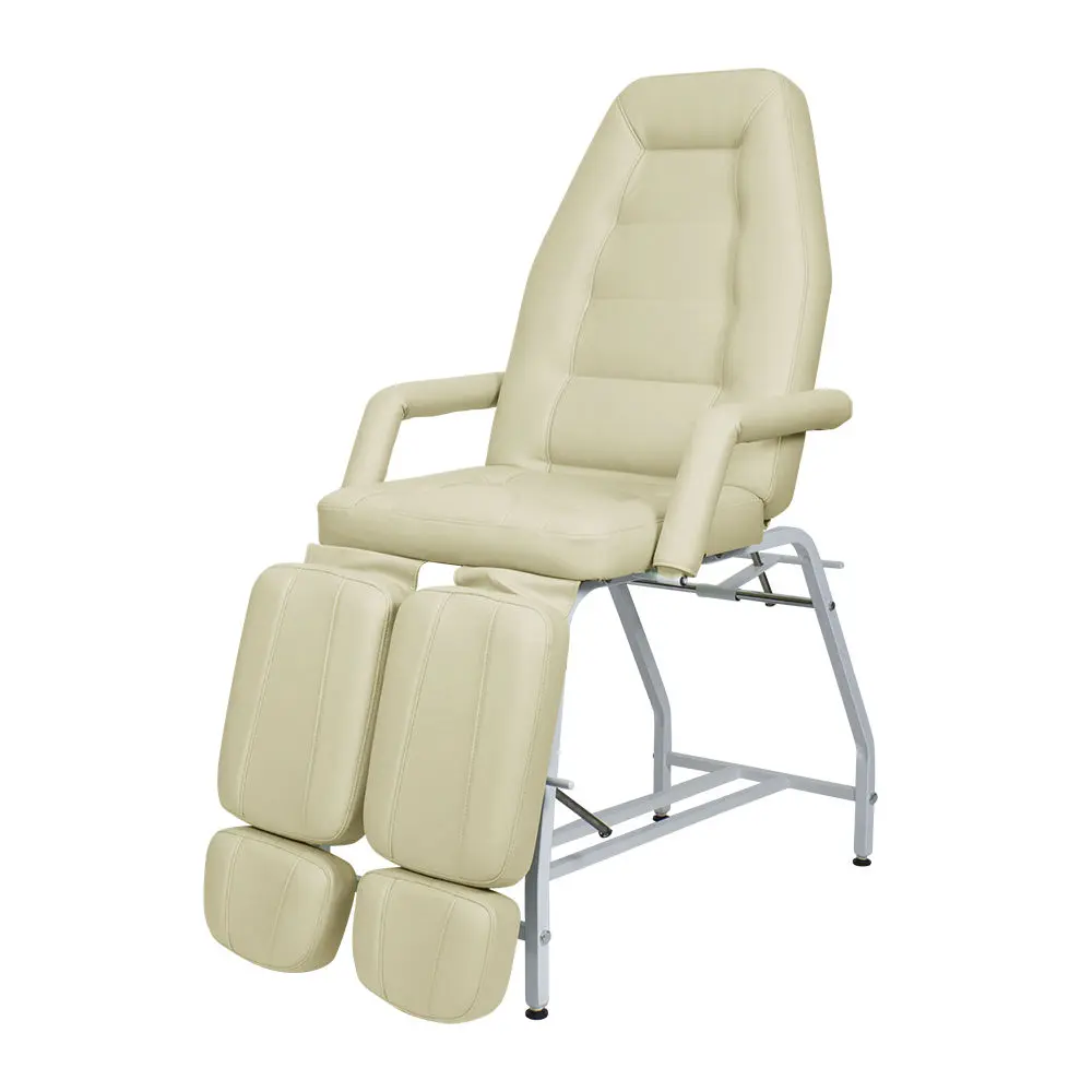 Педикюрное кресло СП Люкс относится к серии доступного профессионального оборудования по выгодной цене. Оно имеет стильный дизайн и обеспечивает необходимый уровень комфорта клиентам и мастерам в процессе выполнения педикюра и других косметологических процедур. Оборудование укомплектовано надежным устойчивым каркасом из металла, покрытого белой порошковой краской для защиты от коррозии. Для обивки мягких элементов наша компания использует экологически чистый и долговечный материал – экокожу. Она легко поддается чистке и не требует специального ухода.