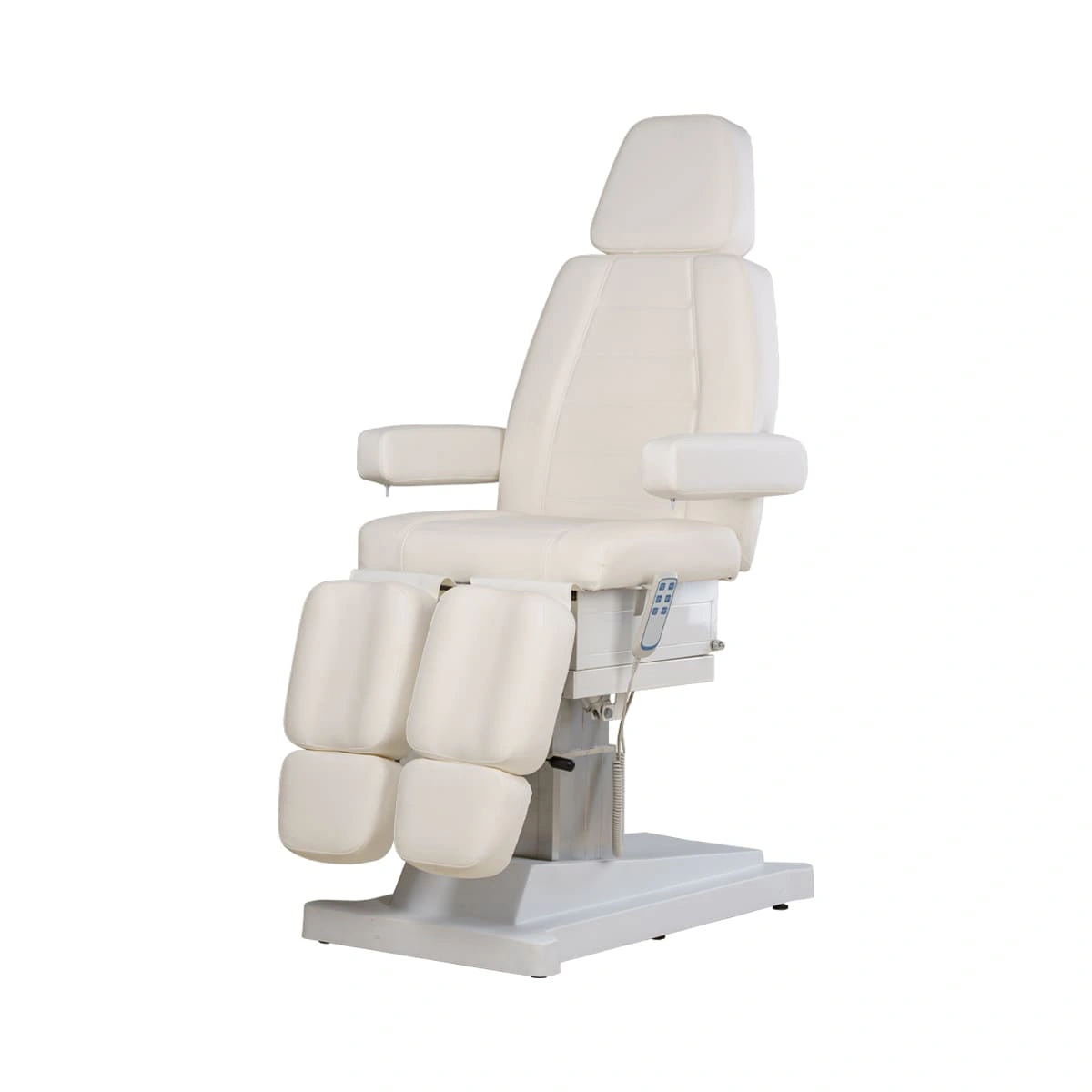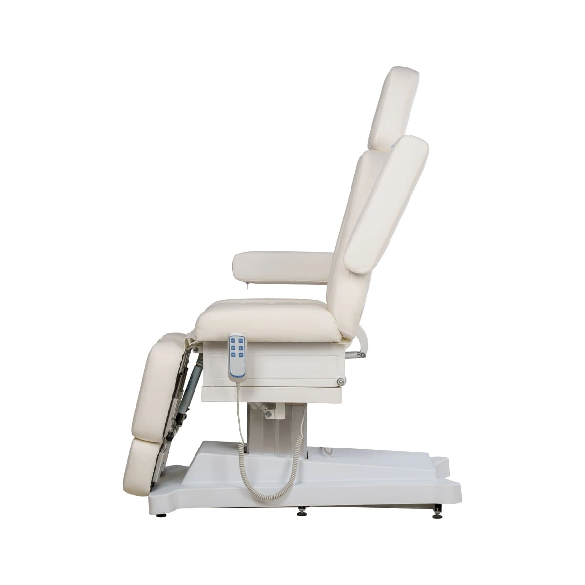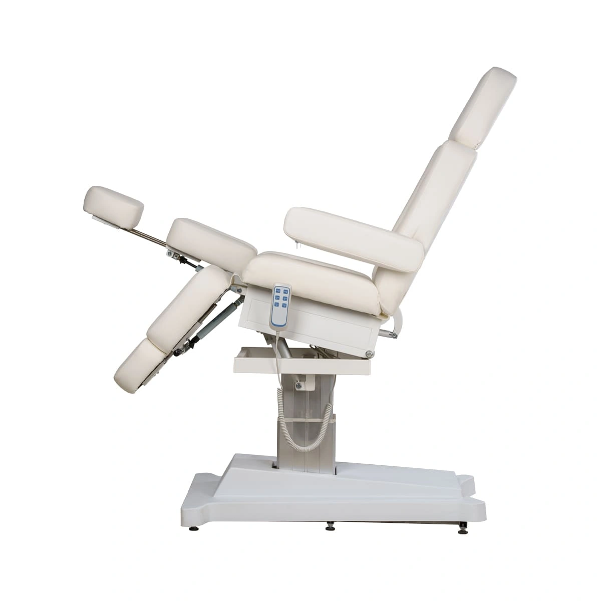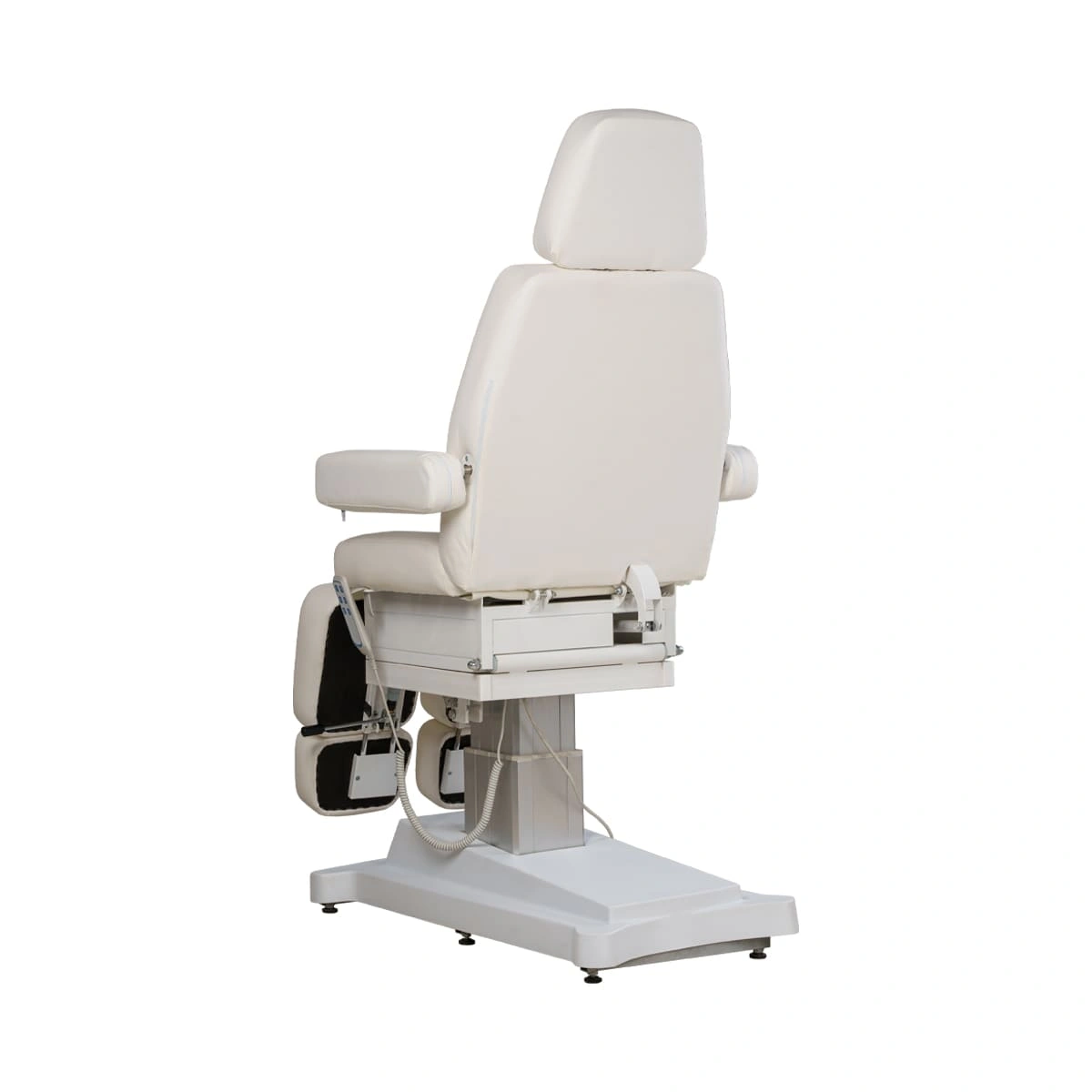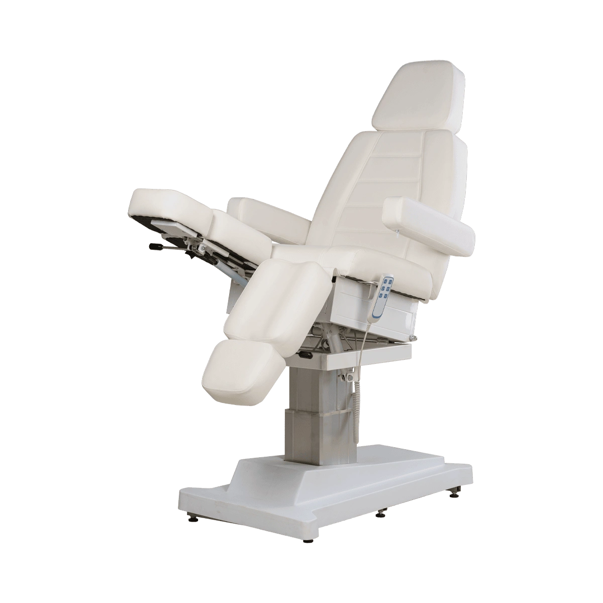 Регулировки электропривода позволяют без дополнительных усилий менять положение отдельных элементов и осуществлять подъем кресла. Регулировка высоты подъема осуществляется с помощью мотора, расположенного внутри колонны. Кресло на колонне имеет элегантный и завершенный образ. Регулировка ножек кресла осуществляется с помощью пневматики, что намного облегчает работу мастера!